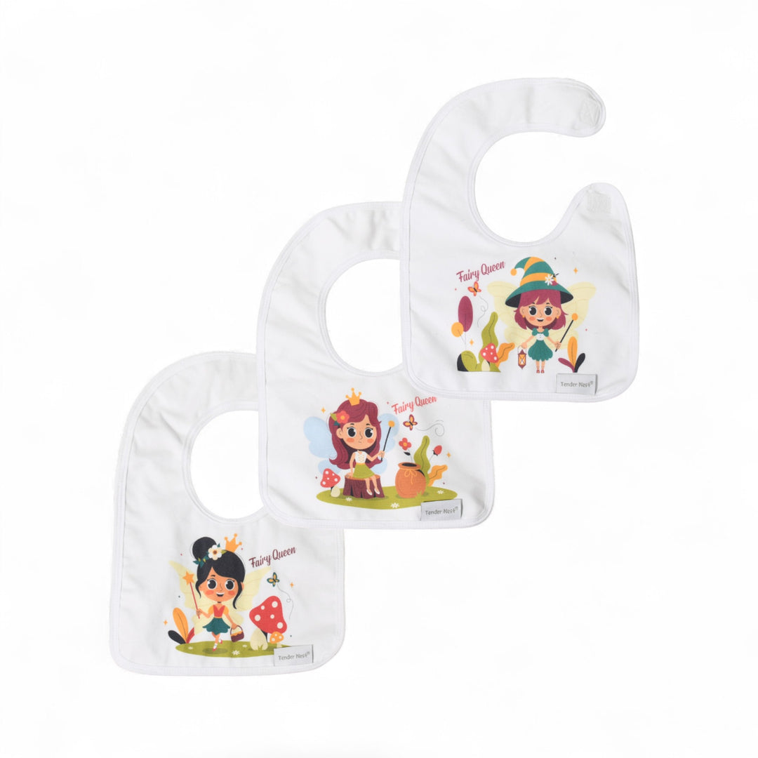 Baby Bib Fairy Queen Pack of 3 " Flower , Red & Purple "