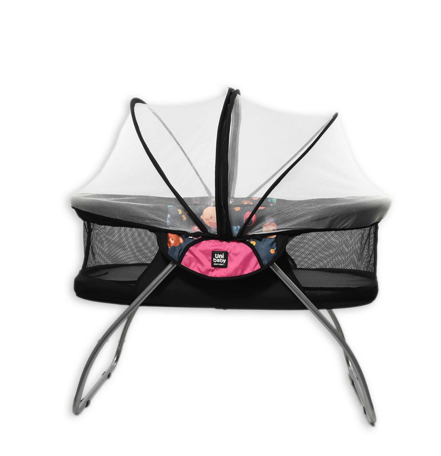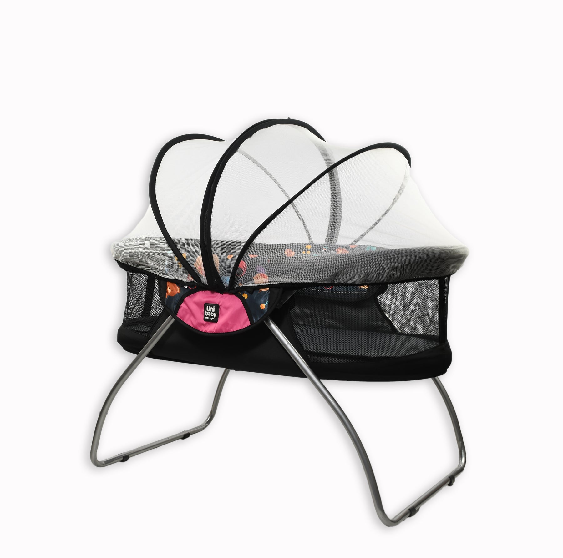 Waterproof fabric is easy to clean -1 Bed fixed-2 Fitted with a separate mattress of soft foam -3 has a mosquito net for child protection Easy to install and zipper to open from the middle -4 Mattress and mosquito net can be used without bed -5 Easy to store, open and lock -7 Bed size open : 100 * 60 * 60 cm Bed size locked: 70 * 15 *